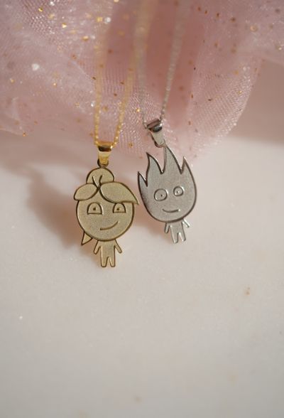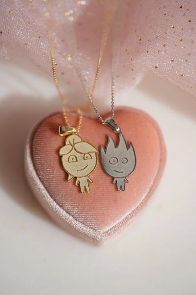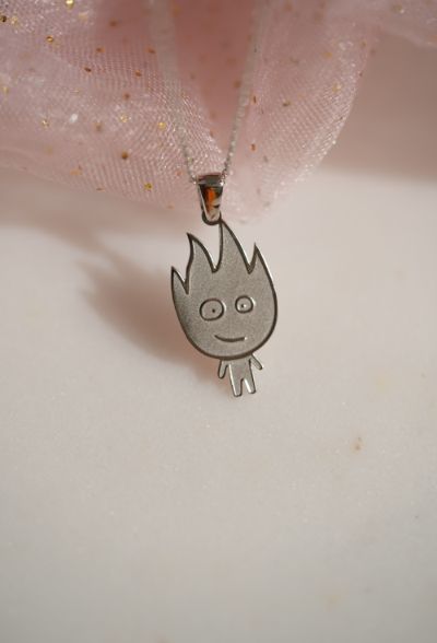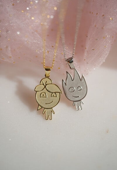 Water Girl Fire Man Necklace - 925K Sterling Silver Necklace, Water Girl Fire Man Necklace - 925 K Sterling Silver